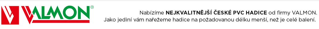 Společnost VALMON je největším výrobcem hadic v České republice. Vysoka kvalita, vybrané materiály a dlouhá životnost produktů rychle dostala značku do širokého podvědomí nejen v České republice, ale i v okolních zemích. V nabídce firmy VALMON najdete velké množství typů hadic v různých délkách i průměrech a barevném provedení.